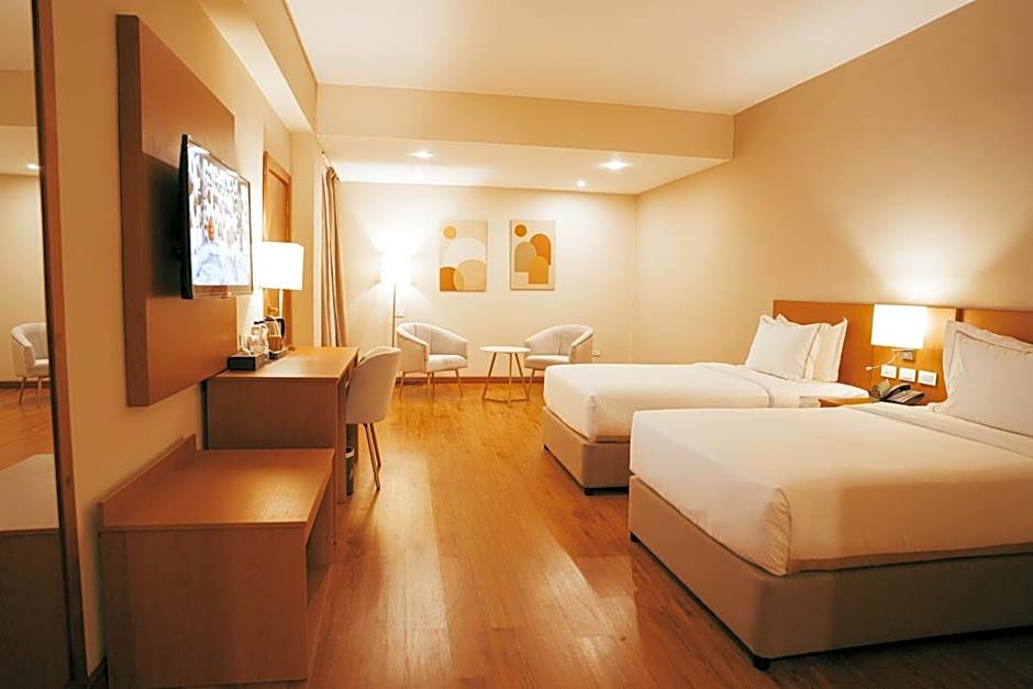 The spacious twin room provides air conditioning, a mini-bar, a balcony with city views as well as a private bathroom featuring a bath or a shower. The unit offers 2 beds.